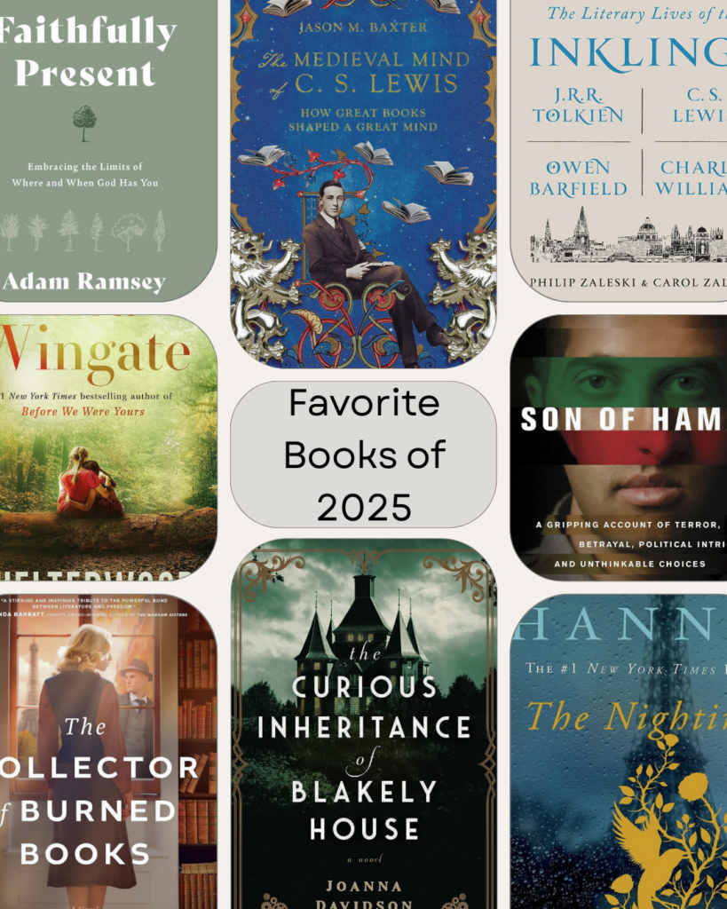 This year, while I still read often and in a wide variety of genres, I haven’t posted many reviews. It was a challenging year in many respects, but also a beautiful year. My husband and I got to celebrate a major anniversary by going to England and Scotland! Before we visited Oxford (where we spent a couple of days getting absolutely soaked with rain), I thoroughly enjoyed diving into the life and writings of C.S. Lewis and his Inklings friends. Several British writers make an appearance in this list of my favorite books of 2025! If you are a fellow reader always looking for your next book, I hope you enjoy this sample of my favorite books of the year. Please leave a comment or send me a message with your book recommendations for my next year of reading!